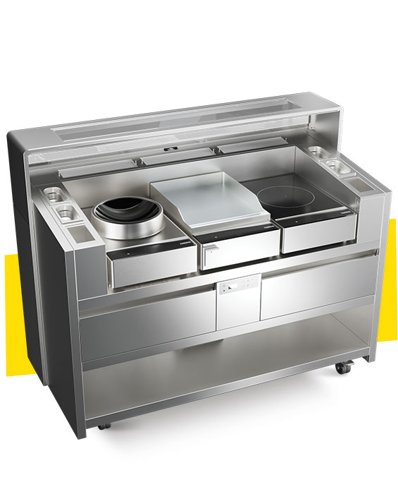 Mångsidigt mobilt kök som kan special anpassas genom att kombinera olika tillagningsfunktioner.